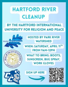 This Saturday 9-12 is a river clean up in Hartford at the Hartford International University for Religion and Peace, next to UCONN Law school. The site is unique in that it is the last spot that the Park river is above ground before it heads underground, under downtown Hartford, dumping into the Connecticut River. Aka. Last chance to extract that trash!
